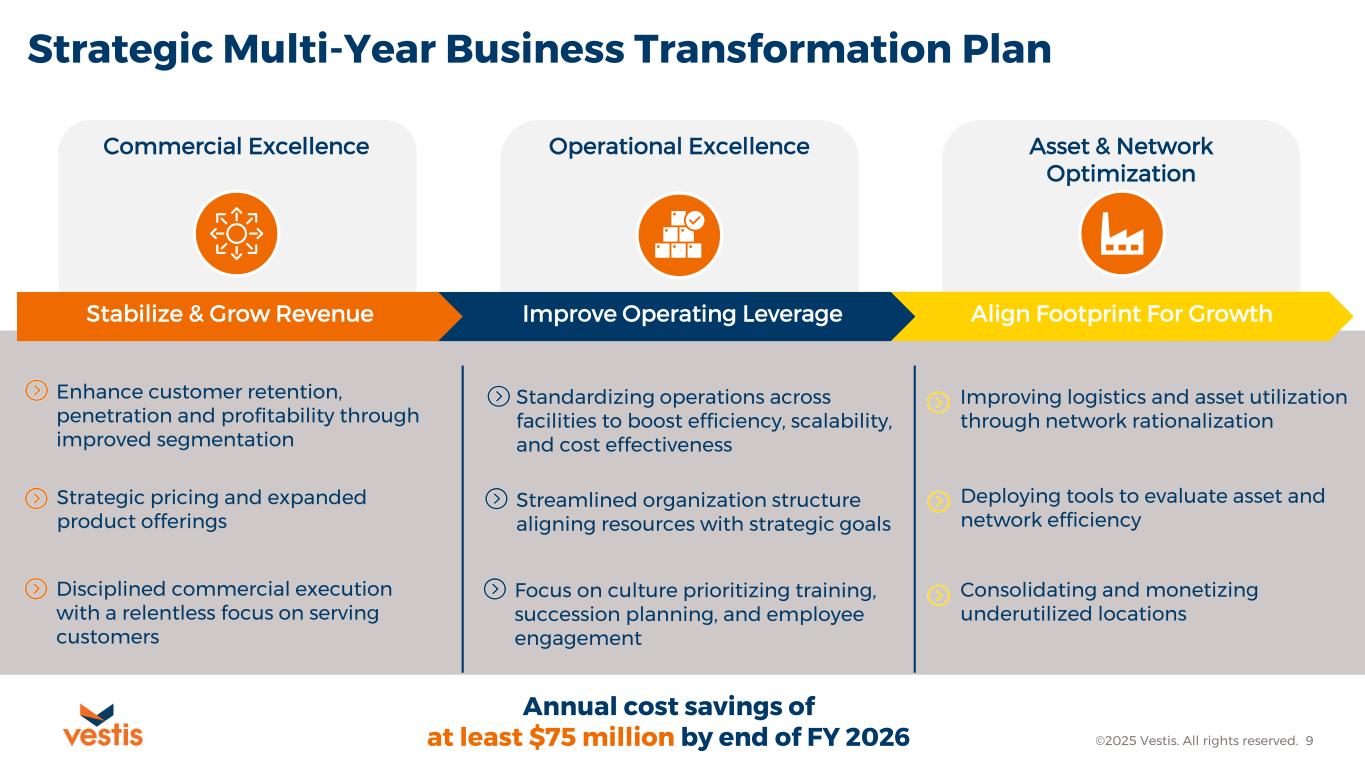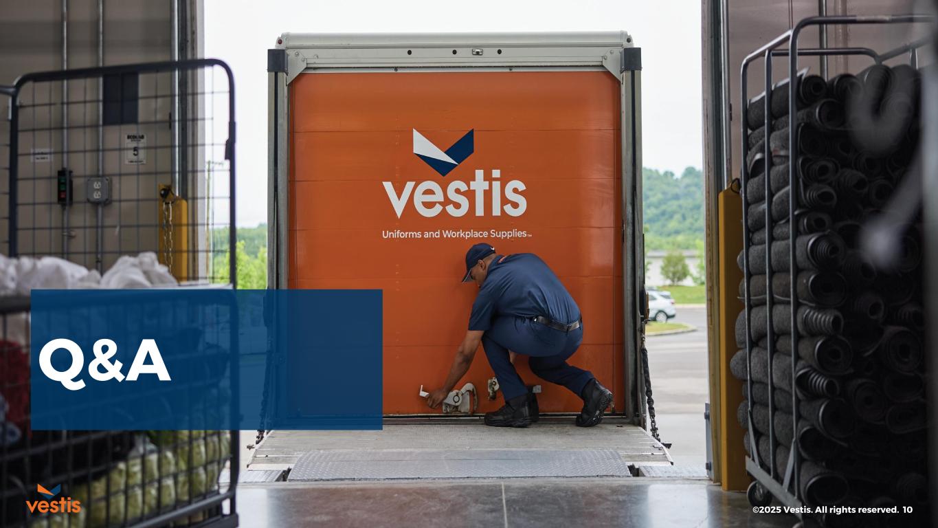 Strategic Multi-Year Business Transformation Plan Commercial Excellence Operational Excellence Asset & Network Optimization Improve Operating LeverageStabilize & Grow Revenue Align Footprint For Growth Enhance customer retention, penetration and profitability through improved segmentation Strategic pricing and expanded product offerings Disciplined commercial execution with a relentless focus on serving customers Standardizing operations across facilities to boost efficiency, scalability, and cost effectiveness Streamlined organization structure aligning resources with strategic goals Focus on culture prioritizing training, succession planning, and employee engagement Deploying tools to evaluate asset and network efficiency Annual cost savings of at least $75 million by end of FY 2026 Improving logistics and asset utilization through network rationalization Consolidating and monetizing underutilized locations ©2025 Vestis. All rights reserved. 9